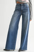 The Quincy Ultra Wide Leg Jeans in a Dark Medium Wash. High Rise. The Quincy have a flattering rise, fit snugly at the hips, and flare out just right to hit the floor. Made from a comfy, stretchy cotton blend that's eco-friendly.