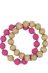2pc Wooded Bracelet Set in Hot Pink & Gold. Stretchy.