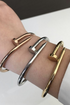 Modern Opus Curved Nail Wrap Bracelet. Hinge Cuff. Choose from Silver or Gold. Stainless Steel.