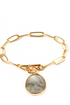 Grey Stone Pendant Bracelet in Gold Paperclip Chain