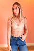 Western Sand Sheer Lace Layering Top in Khaki. High Mock Neck. Long Sleeve. Lace Sheer Top perfect for layering over a bralette or cami.