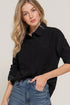 DOOR BUSTER! Corduroy Button Down Shirt in Black. Collar.Long Sleeves. Curved Hem.