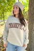Thankful University Graphic Sweatshirt Sand and Brown. Relaxed Fit. Banded Hem and Cuffs. Solid Back.