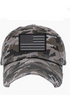 American Flag Patch Hat in Distressed Camo. Distressed Cotton Hat that’s adjustable with Patch American Flag in a Darker Contrast Vintage Wash.