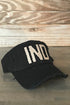 IND Indiana Initial Patch Baseball Hat in Several Colors. Distressed Cotton Hat that’s adjustable with Patch Letters in Off-White.