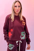 Sports Club Graphic Patch Sweatshirt in Maroon. Pullover Sweatshirt with Sport patches. Banded Hem and Cuffs. Relaxed Fit. Style with our matching Sports Club Graphic Joggers.