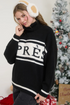 APRÈS Ski Turtleneck Sweater in Black and White. Black Turtleneck Pullover Sweater with White Trim at Hem and Cuffs. Relaxed Oversized Fit. Long Sleeves.