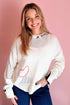 Elan Je t’aime Love Sweater in White. Fall head over heels for the Love sweater, a cozy crewneck with a charming stitched heart motif and “Je t’aime” embroidery for an effortlessly romantic touch. Designed in soft knit with a relaxed fit, this piece is the kind of sweater that speaks volumes without saying a word.