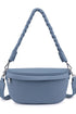 Laney Convertible Crossbody Bag in Denim Blue. Braided Handle with long crossbody strap that’s adjustable. Material: Soft Vegan Leather *Closure: Zipper *Exterior Details: Adjustable/Detachable Shoulder Strap, Gold Hardware, Braided Shoulder Strap *Interior Details: Printed Fabric Lined, 1 Zip Pocket, 1 Slip Pocket
