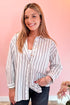 Risky Business Oversized Shirt in Ivory. Collared. Button Down Front. Long Sleeves. Curved Hem. Buttons at Cuffs.