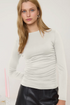 Snowed in Ruched Sides Top in White. Long Sleeves. Ruching at Sides. Fitted.
