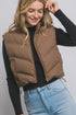 Hold My Hot Chocolate Puffer Vest. Pop Up Collar. Zip Up Front. Side Pockets. Adjustable Toggle Cropped Waist. Lined.