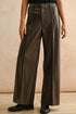Leather Weather Pintuck Wide Straight Pants in Expresso Brown. Front Pleat. High Rise.