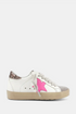 Shu Shop Toddler Paris Sneakers in Grey & Pink. Shu Shop Paris Star Sneakers in Grey with Pink Star. Distressing Vintage Look. Bright Pink Star at Side with Silver Metallic Detail at Heel.