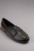 Mirella Slip On Black Loafer Shoes. Round Toe with Stitching Detail. Soft Vegan Leather. Slip On.