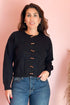 Gwen Toggle Button Sweater Cardigan in Black. Wooden Toggle Button Front. Long Sleeves. Subtle Checkered Pattern. Fitted.