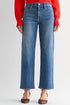 It’s a Moment Slim Wide Leg Jeans in Medium Wash. Mid Rise. Some Whiskering and fading at thighs. Soft, Stretch Denim.