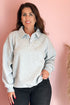 Robbie Oversized Polo Sweatshirt in Heather Grey. Buttoned Collar. Long Sleeves with Banded Cuffs and Hem. Oversized Fit.