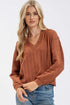 Veronica Long Sleeve Top in Sienna. V-neckline. Banded Hem on Long Sleeves.