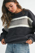 Winnie Terry Cotton Stripe Sweatshirt in Charcoal Grey. Long Sleeves. Banded Hem, Cuffs & Neckline. Relaxed Fit