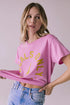 Featuring a playful gold bolt design on a bright bubblegum pink cotton blend backdrop, this 80s inspired tee exudes a sweet, fun vibe.