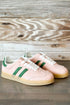 Christi Double Side Green Stripes Sneakers in Pink. Lace Up Sneaker in White. Retro Style Sneakers. 2 Color Laces Included.