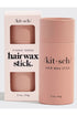 Kitsch Hair Smoothing Wax Stick.  100% vegan & plant-based wax stick enriched with nourishing castor oil - Tames stubborn strands for a sleek & polished style - Effortlessly smooths hair with a convenient solid stick design for touch-ups on the go - No-residue formula is easy to comb through, re-style & wash out - All-day hold locks your look in place without texture or greasiness - Packaging is made from biodegradable FSC-certified paper - Made in the USA, Vegan, Cruelty-Free, Leaping Bunny Certified