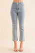 Party Lights Rhinestone Studded Jeans in Light Medium Wash. Some Distressing. Ankle Length. High Rise. Stretch Denim. Spaced out Rhinestone Studs in front and none in the back.