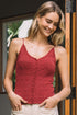 Pointelle Burnt Sienna Scallop Tank Top. Adjustable Spaghetti Straps. Fitted. Pointelle Pattern. Style under our Matching Sienna Cardigan!