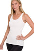 Ribbed Racerback Tank Top in White. Fitted and Stretchy, perfect for layering! Longer Length.