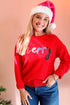 Merry Tinsel Graphic Sweater in Red. Multi Colored Merry Lettering in Front in Tinsel. Relaxed Fit. Ribbing at Cuffs and Hem.