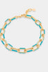 2 Tone Enamel Paperclip Bracelet in Gold. Choose from Orange, Turquoise, or Very Periwinkle. Adjustable fastener. 7”