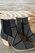 CCOCCI Francesca Studded Boots in Black. Stacked 2.5” Heel. Faux Leather. Pointed Toe. Side Zip Closure.