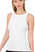 High Neck Ribbed Tank Top in White, Black or Camel. Rayon.