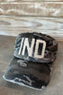 IND Indiana Initial Patch Baseball Hat in Several Colors. Distressed Cotton Hat that’s adjustable with Patch Letters in Off-White.