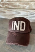 IND Indiana Initial Patch Baseball Hat in Several Colors. Distressed Cotton Hat that’s adjustable with Patch Letters in Off-White.