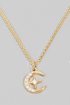 Moon & Star Pendant Necklace in Gold or Silver. Measures 16” with 2” extension