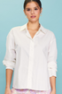 Poplin White Button Down Shirt. Classic White Blouse with Button Down Front. Collared. Long Sleeves with Buttoned Cuffs.
