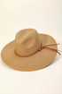 Shady Lady Wide Brim Fedora Hat in Khaki with Braided Faux Suede Belt with Fringed Detail. Adjustable.